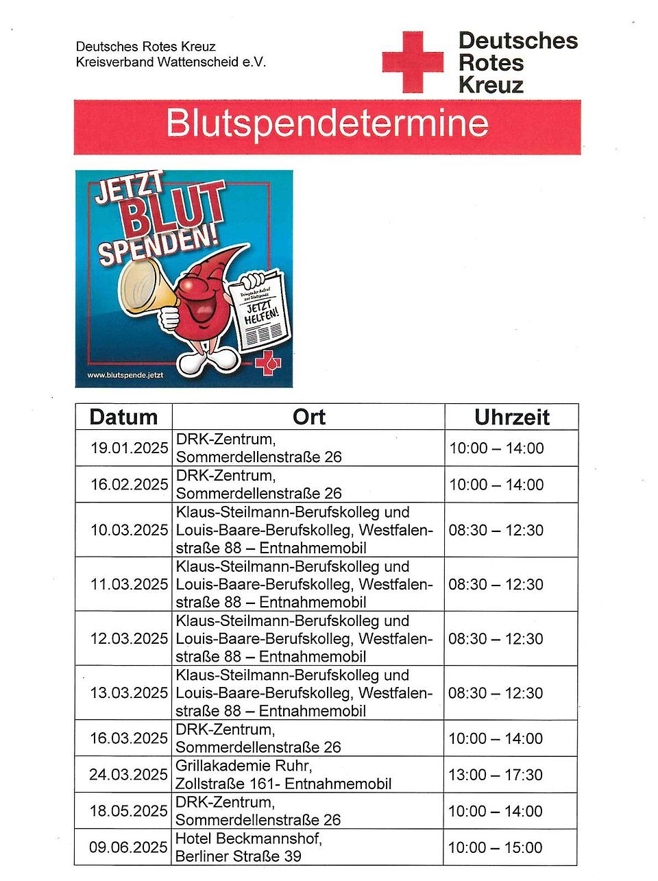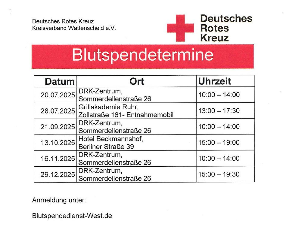 Blutspendetermine 2025 in Wattenscheid